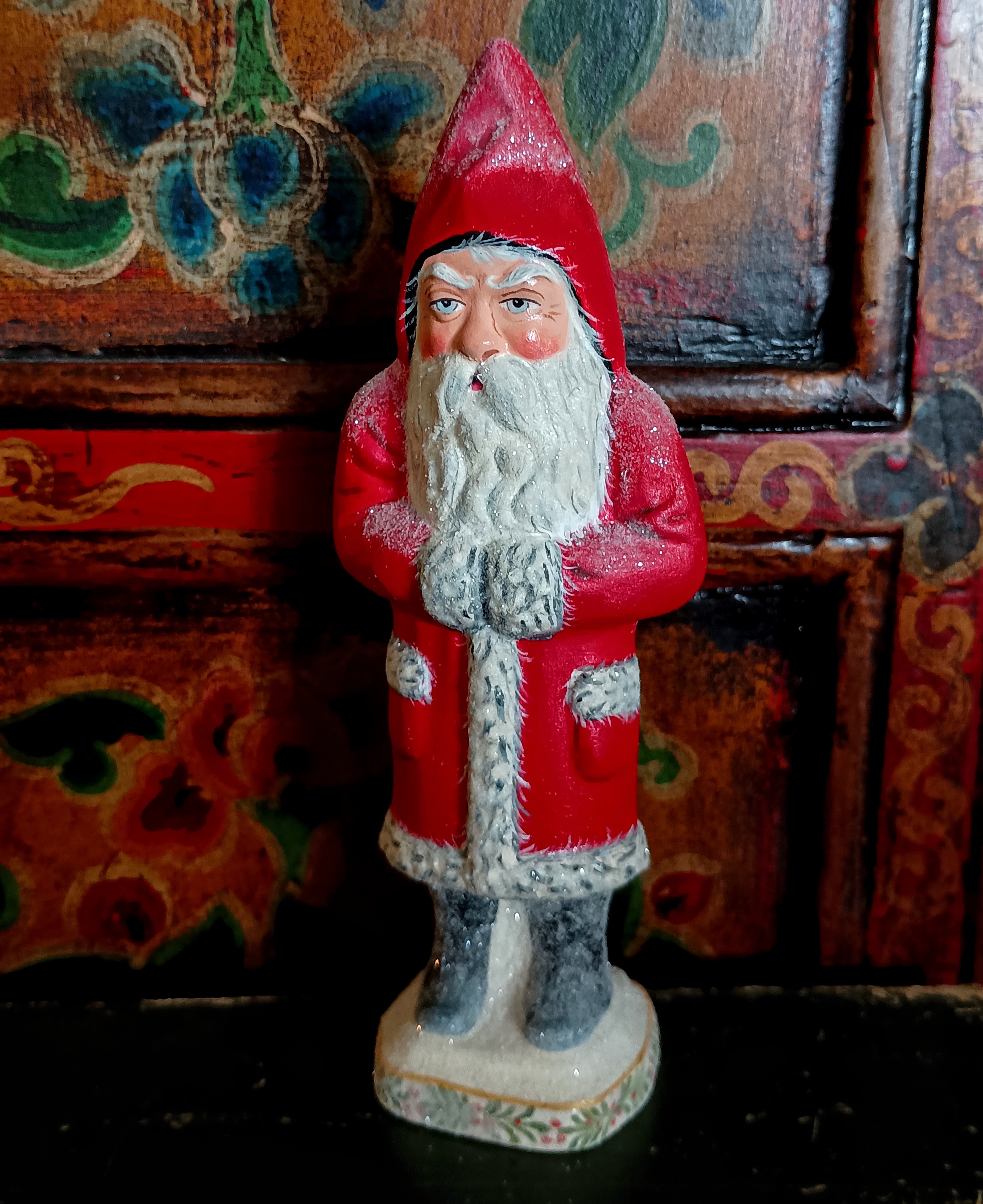 I offer new, limited edition and one of a kind Folk Art Chalkware Belsnickles and Santas