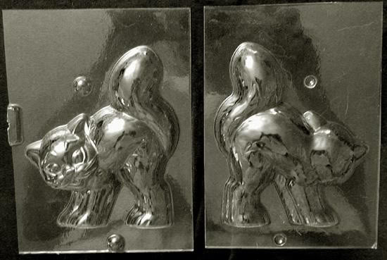#H06; Halloween Scaredy Cat Chocolate Mold 3 7/8" Heavy Duty plastic, Open Bottom, $65 |