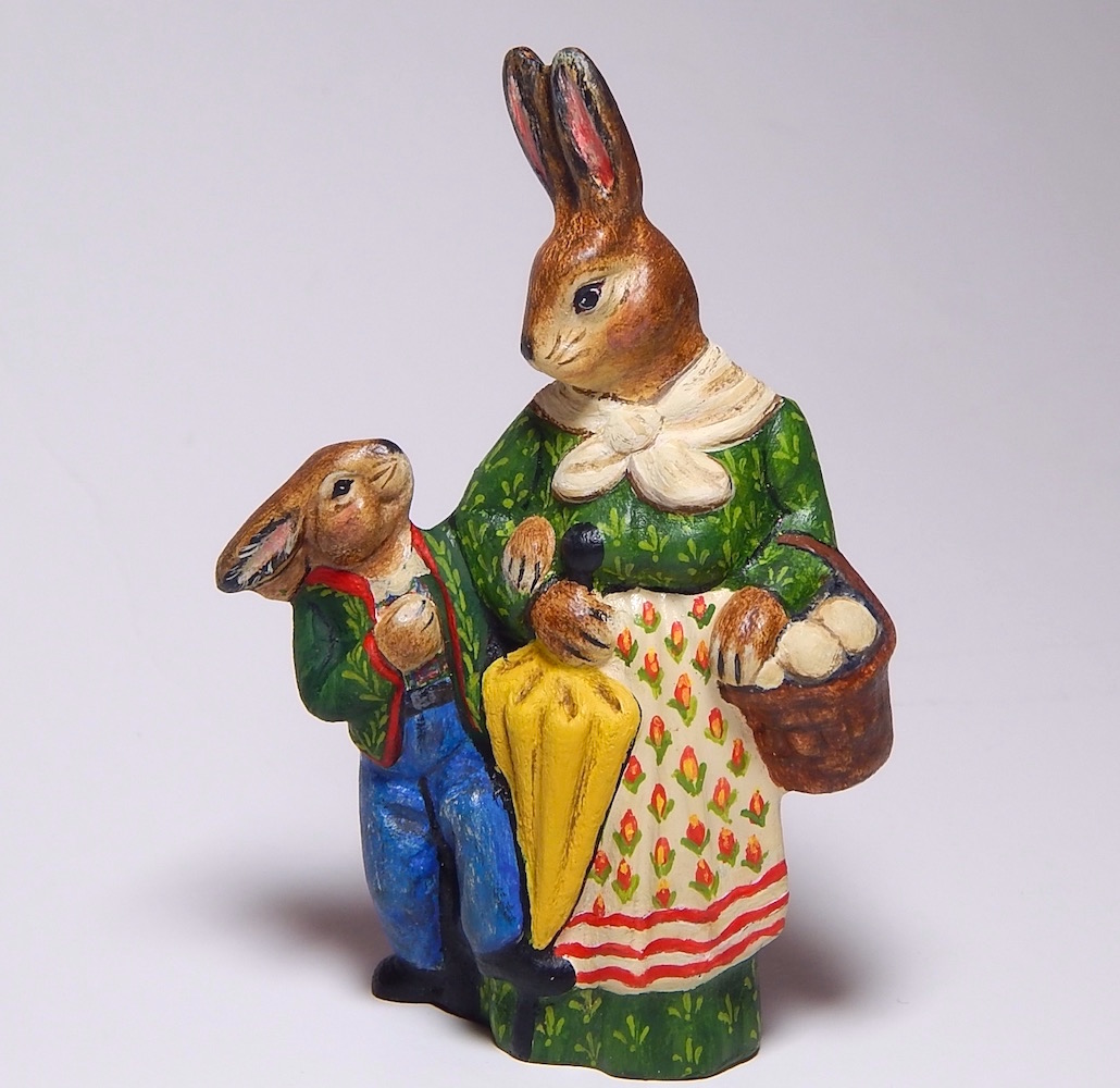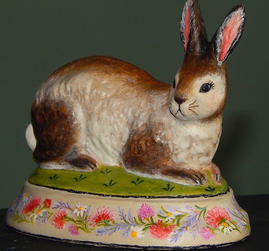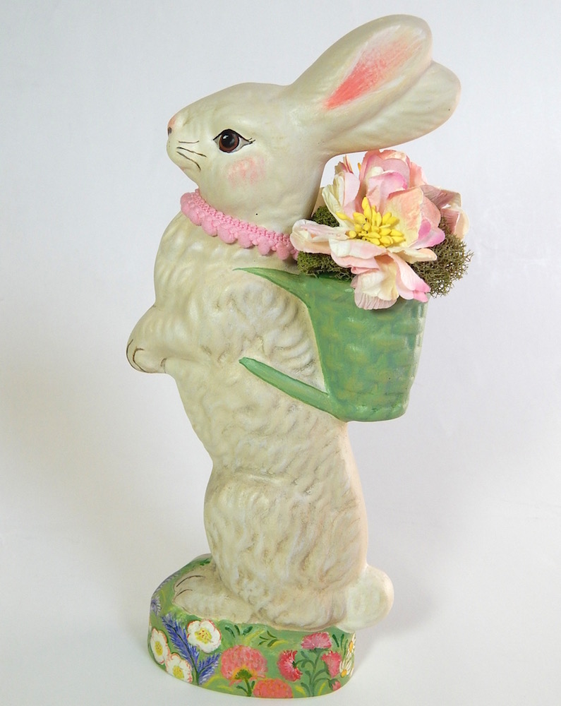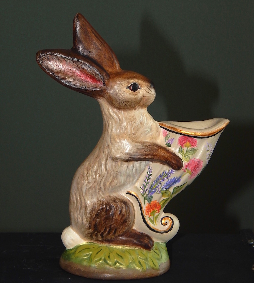 Our hand-painted chalkware rabbits and spring figures bring a sense of joyful renewal and whimsical charm to the home, signaling the end of winter with bright, festive elements. They evoke a welcoming, cheerful spirit, blending nostalgic, Old-World German styles with vibrant artistry to create a timeless seasonal display.
