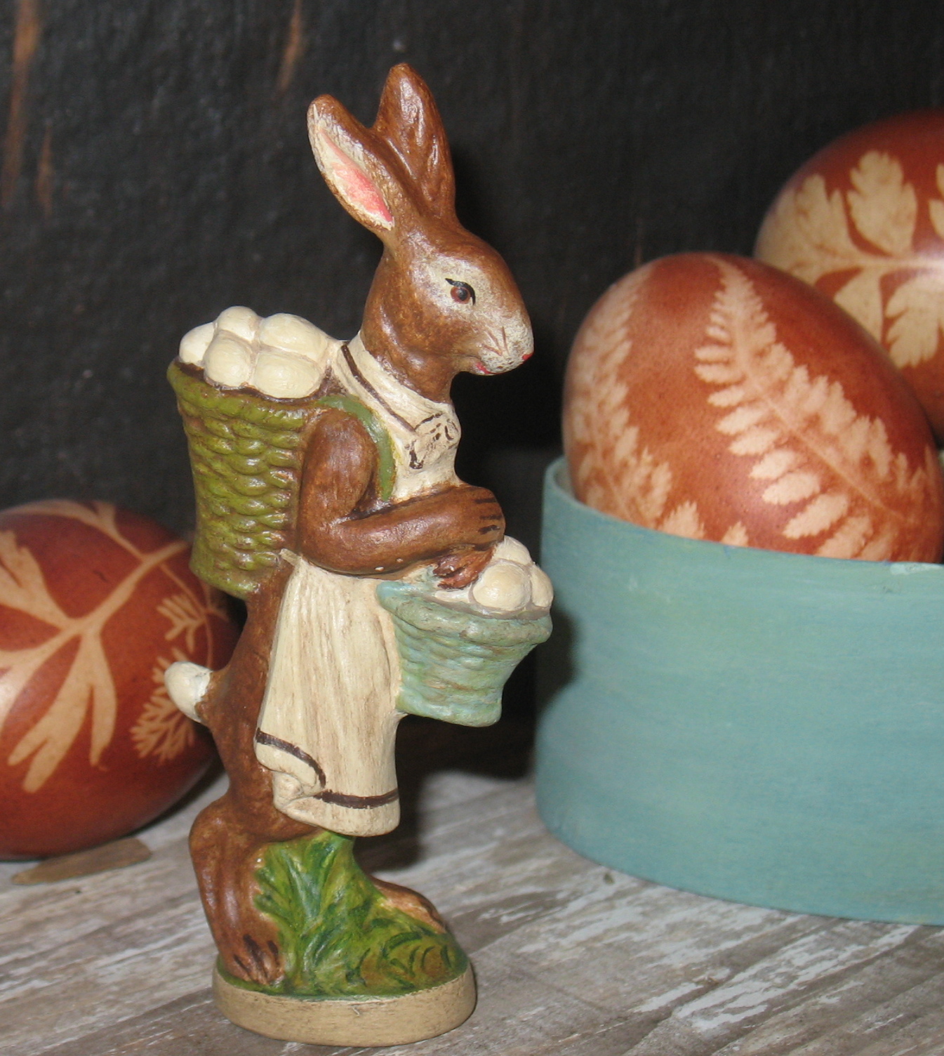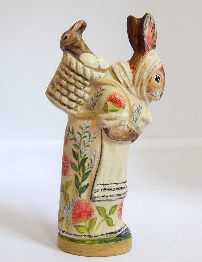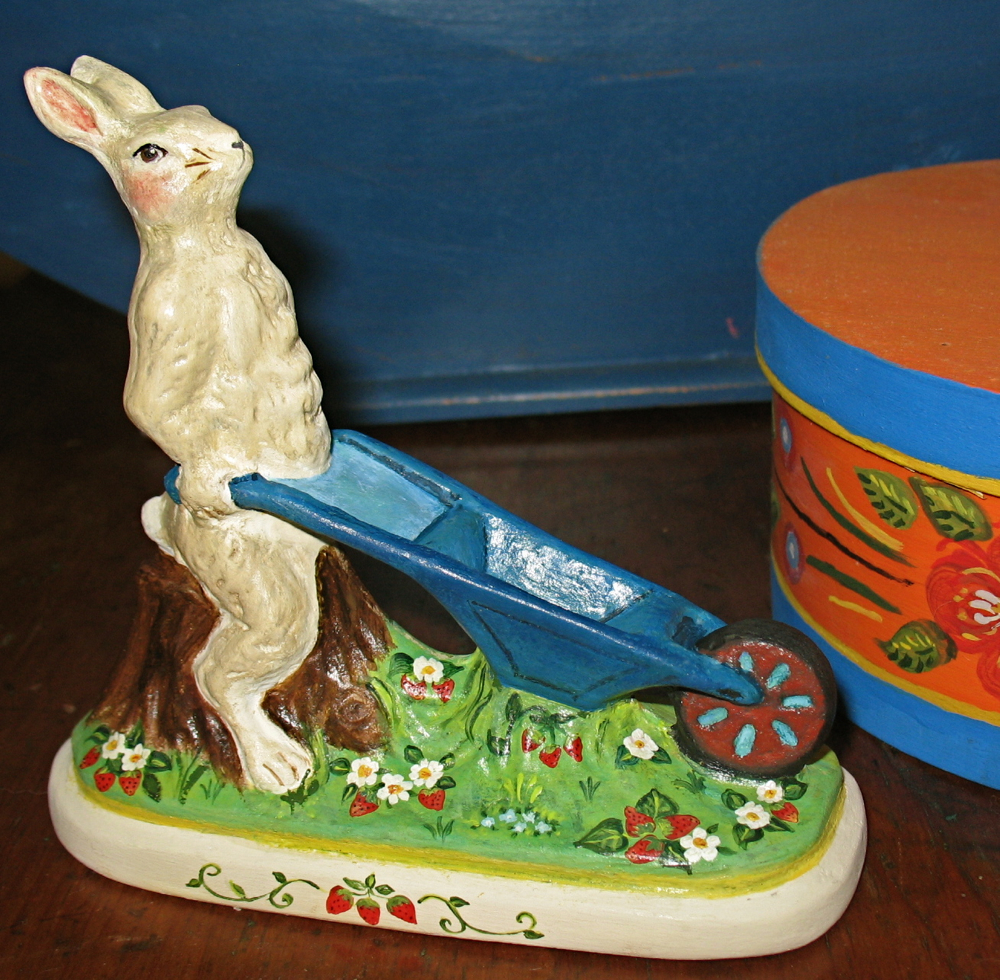 Our hand-painted chalkware rabbits and spring figures bring a sense of joyful renewal and whimsical charm to the home, signaling the end of winter with bright, festive elements. They evoke a welcoming, cheerful spirit, blending nostalgic, Old-World German styles with vibrant artistry to create a timeless seasonal display.