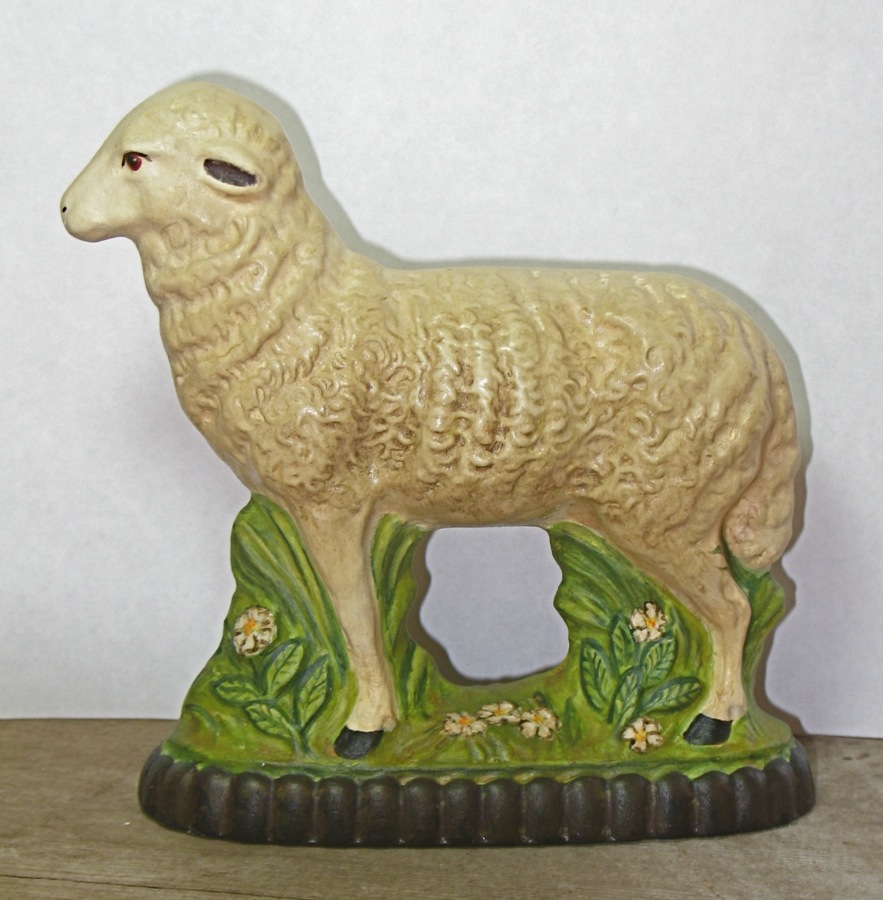 Catalog #L114 — 5 1/2" Hand-Painted Rustic Folk Art Lamb for Primitive Mantels