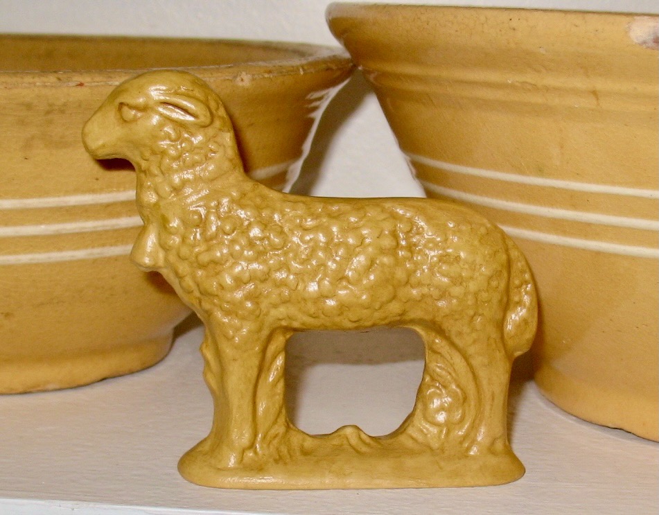This Yelloware Standing Lamb is a timeless piece of folk art, cast from a rare antique chocolate mold by the renowned German maker, Anton Reiche. Reiche molds are highly prized by collectors for their exceptional detail and lifelike proportions.