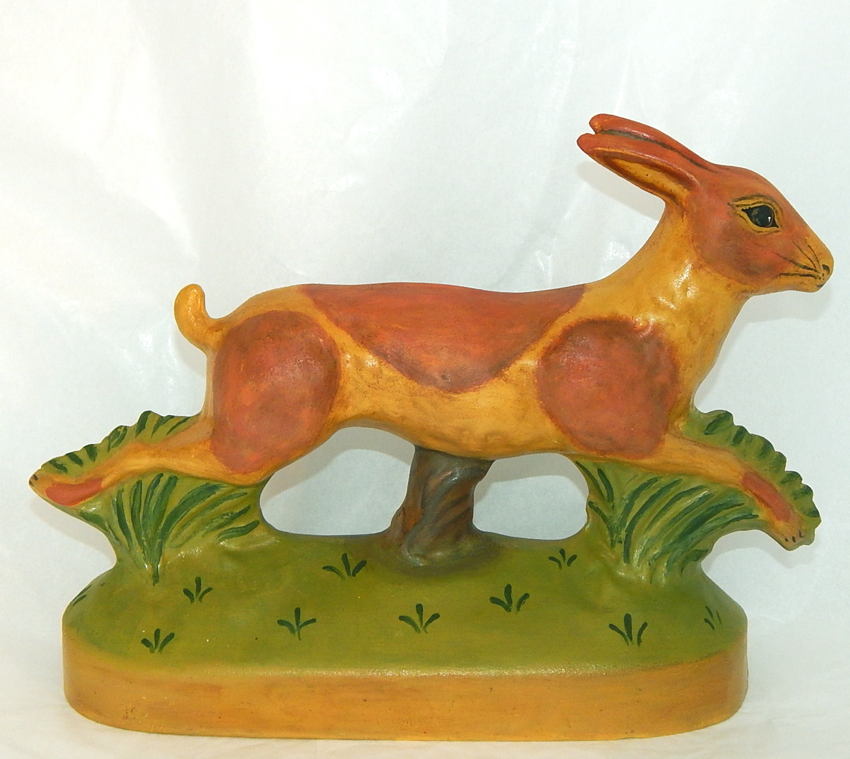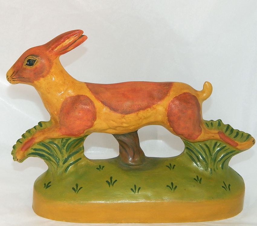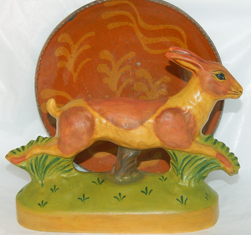 Bring a piece of New England folk art into your home with this hand crafted Leaping Redware Rabbit. This wonderful piece was inspired by Early American Redware and Yelloware, hand crafted using an antique chocolate mold. The Redware Rabbit measures approx 10 inches wide, is signed, numbered: Limited Edition #1 and dated 2003 on the bottom. ![]() click image for enlarged view ![]() click image for enlarged view ![]() ![]() Using self-taught methods, Bittersweet House Folk Art captures the character and warmth of the early American tradition of yelloware and redware and offers unique, hand crafted treasures. While some pieces are crafted using engaging innovative designs, others are inspired by the designs of centuries past. The exacting craftsmanship, colorful design, and finishing of these pieces reflects our historic past and as a result, each piece takes on the feel of a well-loved antique. Finishing expertise and attention to eye-catching details ensure a treasure that will last a lifetime. ![]() click image for enlarged view |