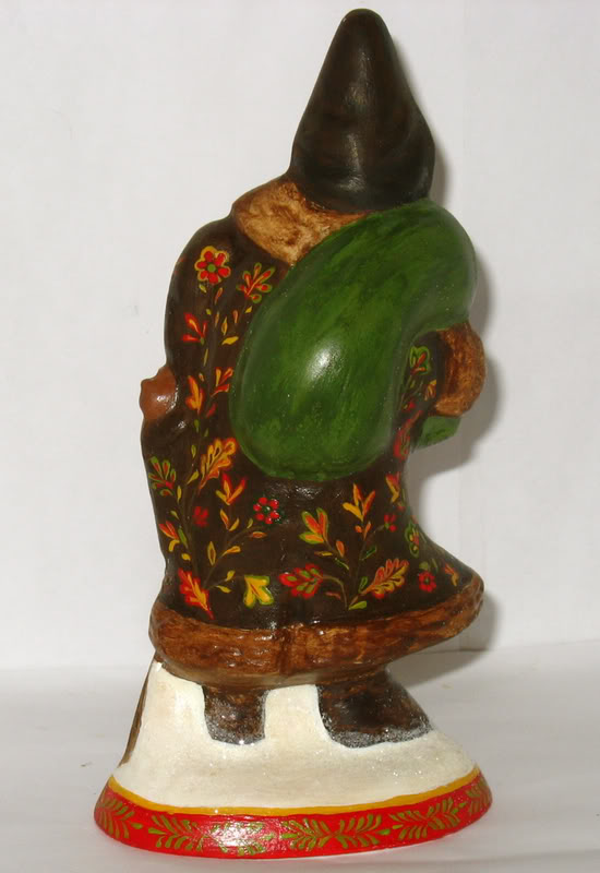 Into the forest. The S493 captures the spirit of a winter trek—Santa leaning into his stride with a walking staff in hand—cast from a rare antique German chocolate mold prized for its dynamic "hiking" pose. The coat is finished in a rich, deep umber brown, providing a warm and earthy foundation for the intricate botanical painting.