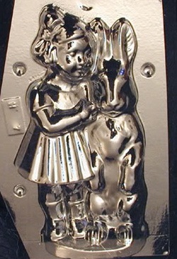 Reproduction plastic chocolate molds for making your own chalkware, paper mache, and beeswax figures. These designs are meticulously selected to capture the charm of antique European molds. Click any image to view a larger version.